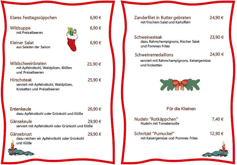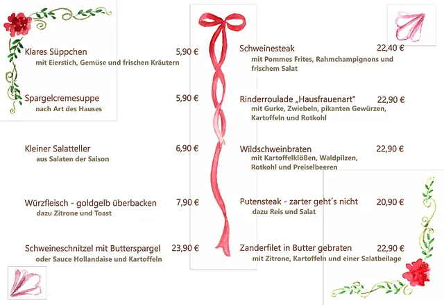 Alle Speisen nach vorheriger Bestellung - telefonisch unter 034955 20434 - auch zur Selbstabholung.
